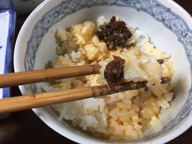 味噌ということなので、辛いのかなーって思ったんだけど甘辛いんです。なので、ごはんが先になくなってしまうこともないので卵とバランスよく食べれます。